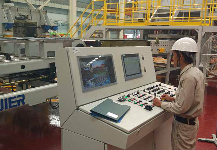 印尼加工中心現(xiàn)有橫切線、縱切線、連續(xù)落料線,可進(jìn)行高表面精度的分條、矩形板和異形件的加工,目前共有操作人員18人。在沒有其它專業(yè)外委承擔(dān)現(xiàn)場(chǎng)輔助工作的情況下,是寶鋼股份全球布局的加工中心里人員配置最少的一家。